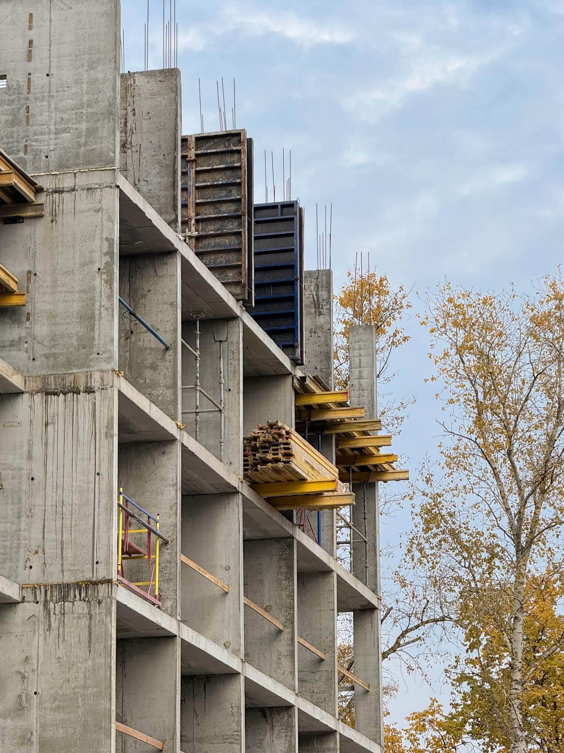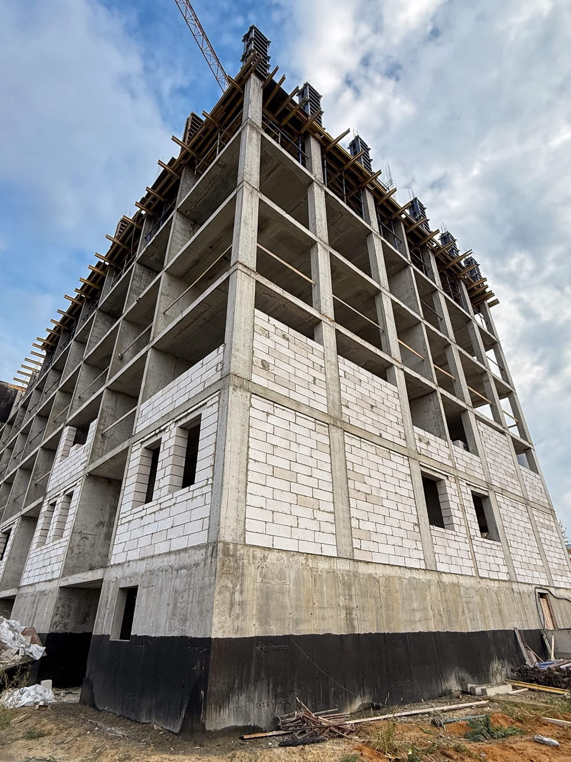 Дом выполнен из монолитного железобетона, что обеспечивает надёжную долговечную конструкцию, отличную тепло и шумоизоляцию. Утеплённый фасад по системе «Стомикс», с красивой подсветкой.